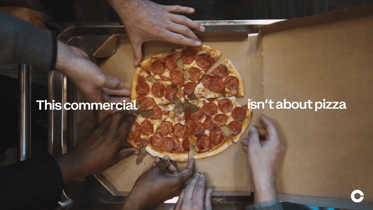 The process begins when brands share campaign goals with Vox Creative, whether directly or through agency partners. For Coinbase, the crypto brand wanted to shift thinking from "why crypto?" to "how crypto?" by showing everyday use through the Bitcoin Pizza Day connection.